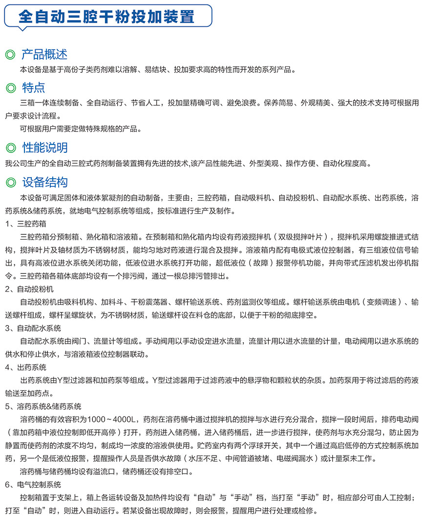 全自动三腔干粉投加装置